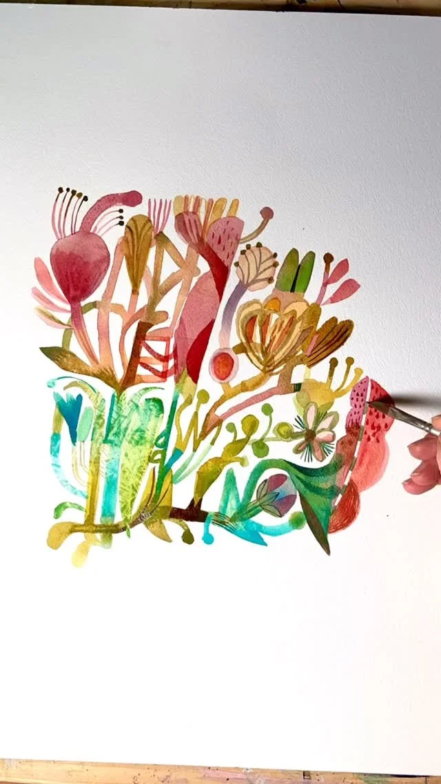 Inspired by nature and seasons, signature botanical forms and organic shapes are always present, using a combination of painting processes and techniques.