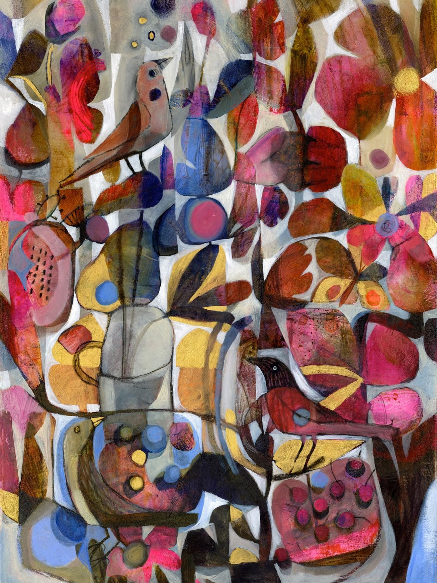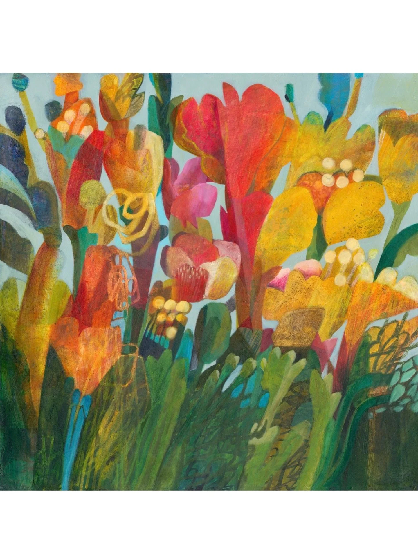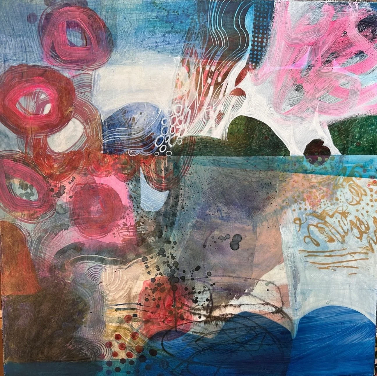 It comes from a deep need to create that has been with me as long as I can remember. Colour is a principal element in my work, applied in layers, and created with an intention to surprise, evoke calming emotions and a sense of joy.
