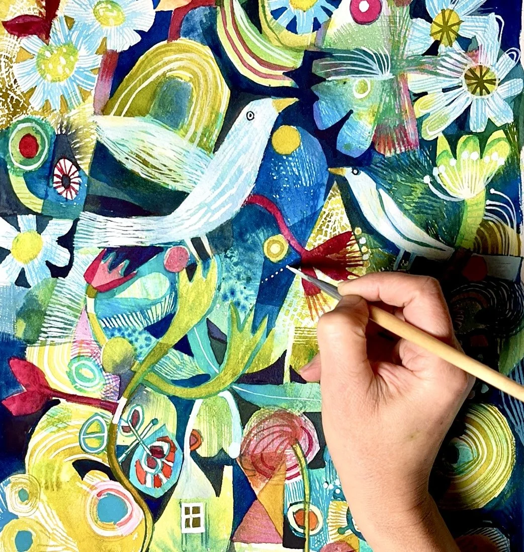 I love doing collaborations with a variety of manufacturers and publishers globally. My work has been licensed for use on homeware, ceramics, wallpaper, calendars, stationery, puzzles, picnic-ware, napkins, needlepoint, textile and quilt fabric collections amongst others.