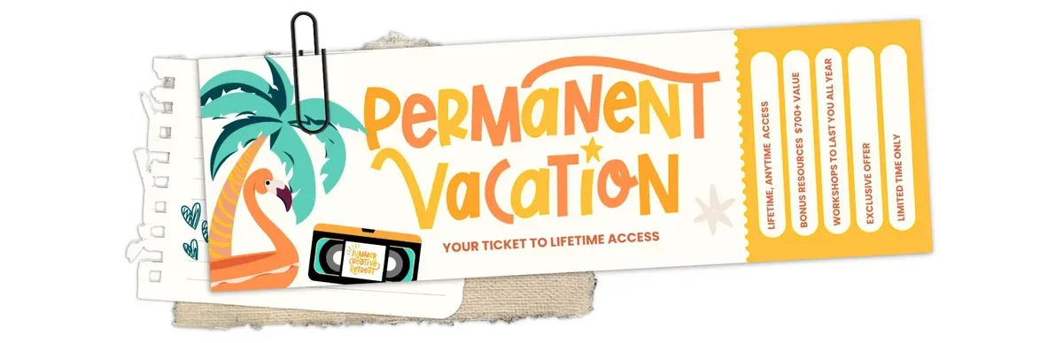 Grab it while it's hot! But really though. Over the years I have heard from so many of you how happy you are to have purchased Permanent Vacation (aka your all access pass to unlimited anytime replays once the event is over), so I'm giving you a heads up to snag yours before the price goes up once Summer Creative Retreat finishes!